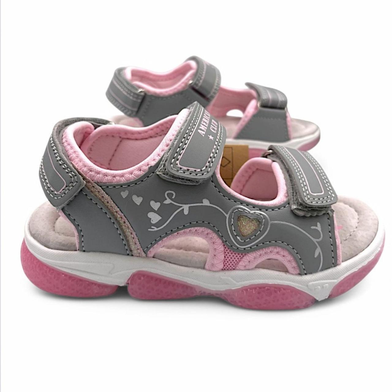 Босоніжки дитячі для дівчинки American club мають шкіряну устілку з супінатором. На ніжці легко фіксуються за допомогою двох липучок. Матеріал верху – ЕКО шкіра.